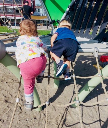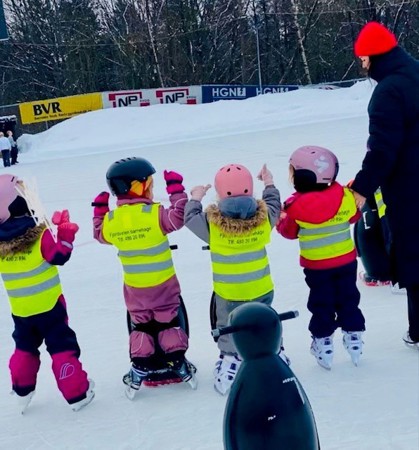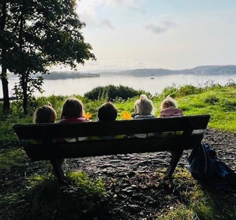 Et stort og variert uteområde, som har eget område for de aller yngste barna. Skogen og sjøen ligger et steinkast unna barnehagen og er hyppig brukte turdestinasjoner.